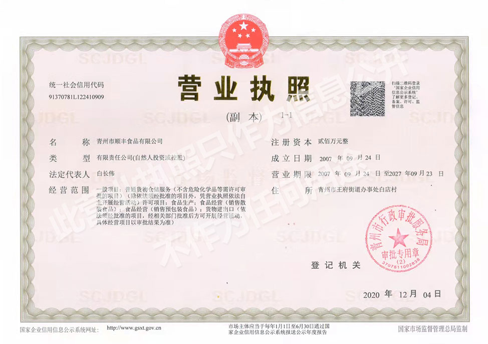 青州市順豐食品有限公司前身為順豐食品廠(chǎng),始建于2007年9月,現(xiàn)在順豐食品公司占地面積30000平方米,其中生產(chǎn)建筑面積15000平方米,冷庫(kù)2000噸3座,現(xiàn)有職工150人。