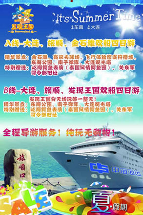 您現在的位置是:首頁 > 旅游及新產業 旅游集團推出冰點大連豪華游輪休閑四日游 次 旅游及新產業 發布時間:2014-06-16 10:29:09 旅游集團推出 冰點大連豪華游輪休閑四日游 為回饋集團內部員工及家屬,旅游集團攜手“中海海運”,隆重推出了“冰點大連豪華游輪休閑四日游”項目。 此次“冰點大連豪華游輪休閑四日游”6月20日首發團,周五出發,周一返回。在濟南乘空調旅游車赴東營港乘坐“長山島”號豪華游輪,直達浪漫之都大連,游客可充分感受游輪出行與大連的獨特魅力!限時勁爆價:A線790元/人,B線950元/人,詳情可咨詢旅游熱線:58888999。 (孫迎)