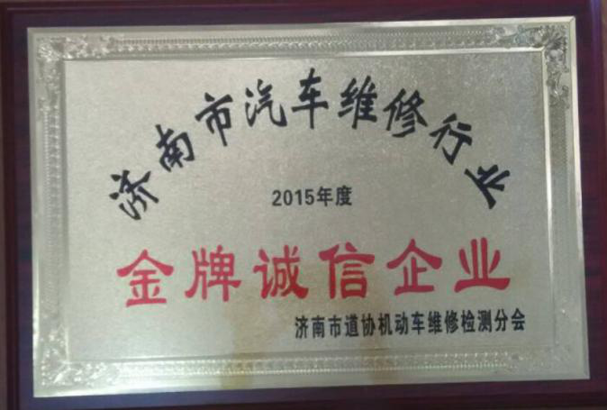 2016年6月,修理廠被濟(jì)南市道路運(yùn)輸協(xié)會(huì)機(jī)動(dòng)車維修檢測(cè)分會(huì)授予“濟(jì)南市維修行業(yè)2015年度金牌誠信企業(yè)”。