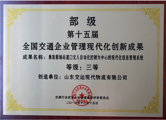 山東交運(yùn)現(xiàn)代物流有限公司榮獲全國(guó)交通企業(yè)管理現(xiàn)代化創(chuàng)新成果三等獎(jiǎng)